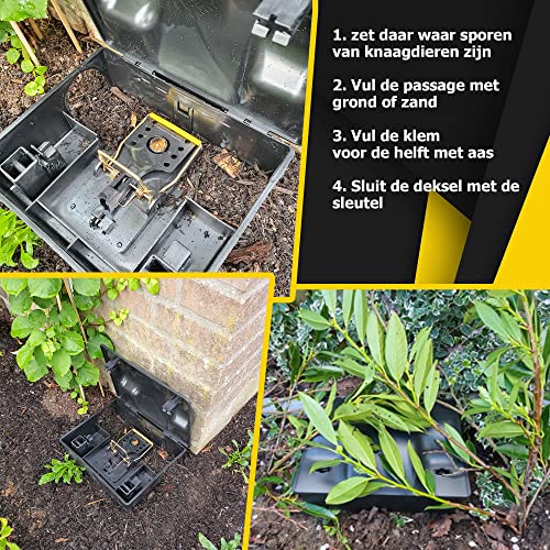 Specificaties: PestiNext Lokaasdepot met Val voor Ratten, Duurzaam Zwart Polypropyleen Plastic Rattenklem, Veilig Vergrendelings-Deksel met Sleutel – 1 stuks